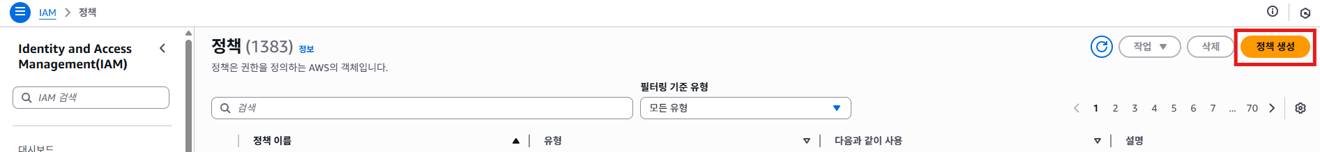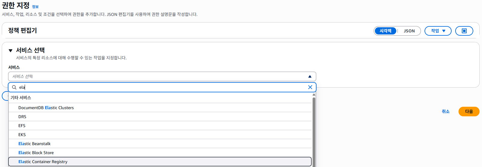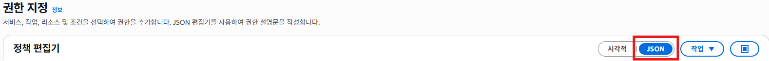 이렇게 검색해서 정책에 작업을 추가할 수 있지만 시간이 없는 우리는 JSON으로 한방에 적을 겁니다.