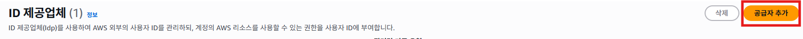 AWS IAM의 자격 증명 공급자 항목에 들어가서 자격 증명 공급자를 만들어줍니다.
