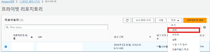 - 이 step의 outputs 중 registry로 ECR 레지스트리 URI를 가져올 수 있습니다.