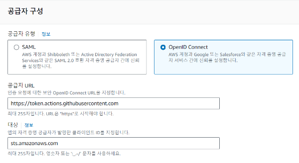 공급자 URL(Provider URL)은 https://token.actions.githubusercontent.com