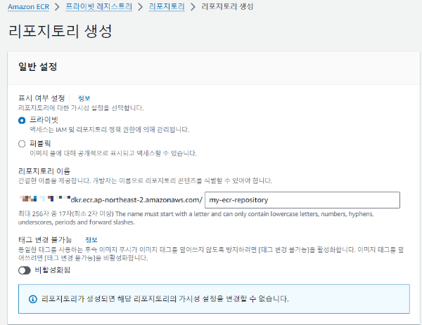 - AWS_REGION 환경변수를 설정하면 ECR public 리포지토리를 사용할 수 없습니다.